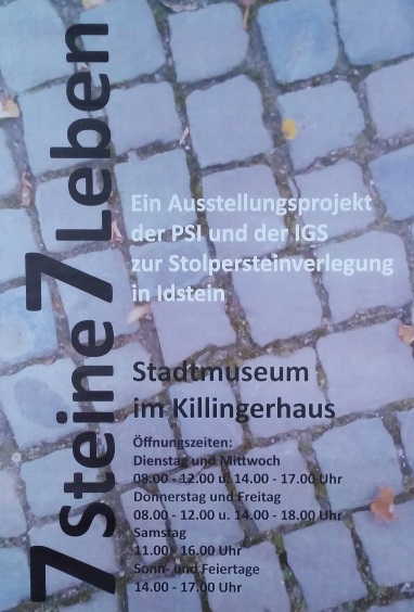 Im vergangenen Schuljahr hatte eine gemeinsame Projektgruppe der Pestalozzischule Idstein und der IGS Wallrabenstein die Verlegung von Stolpersteinen in Idstein initiiert. Inzwischen sind diese nicht nur verlegt, sondern auch Inhalt einer Ausstellung: