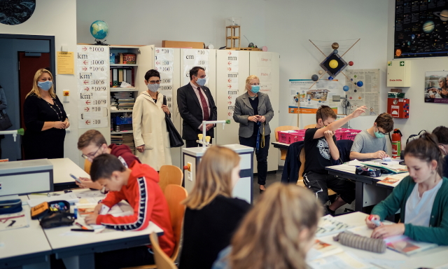 Gut vier Wochen nach Schuljahresbeginn hat Kultusminister Prof. R. Alexander Lorz heute die IGS Wallrabenstein besucht und sich mit Schülerinnen und Schülern und Lehrkräften über den Schulalltag unter Pandemie-Bedingungen und die digitale Ausstattung der Schule ausgetauscht.
