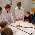 „Wir müssen jetzt leider weitergehen“, fordert die 16-jährige Emelie die Grundschulkinder auf. Bei der „Nacht der offenen Tür“ der Integrierten Gesamtschule (IGS) Wallrabenstein setzen diese sich gerade im Chemieraum mit „singenden“ Weingläsern, Chromatografie sowie der der Flammprobe auseinander. „Wir wollen den Kindern zeigen, wie es hier ist und weitergeben, was wir wissen“, erläutert die Zehntklässlerin. Sie selbst sei rückblickend sehr zufrieden mit ihrer Schulwahl und wolle im nächsten Schuljahr entweder in Limburg oder in Wiesbaden eine gymnasiale Oberstufe besuchen. Ihre heutigen Schützlinge beenden bald die Grundschulzeit.