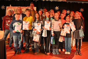 | Am 05.12.2025 fand der diesjährige Vorlesewettbewerb der 6er statt. In der stimmungsvoll dekorierten Aula traten acht Schülerinnen und Schüler, je zwei pro Klasse, gegeneinander an und begeisterten die Jury. Zum Sieger gekürt wurde Felix Krüger, der von Bürgermeister Jan Kraus die Urkunde überreicht bekam - und der nun beim Wettbewerb auf Kreisebene die IGS vertreten wird. Herzlichen Glückwunsch! |