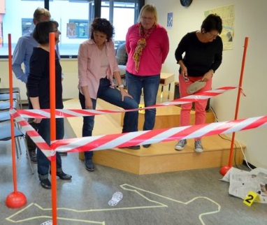 mit Schülern einen Tatort mit Spurensicherung aufgebaut. In