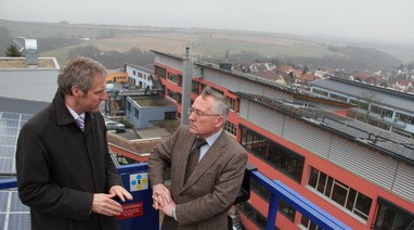erzeugt eine Anlage auf dem Schusterbau Sonnenstrom. Landrat Albers ist sich